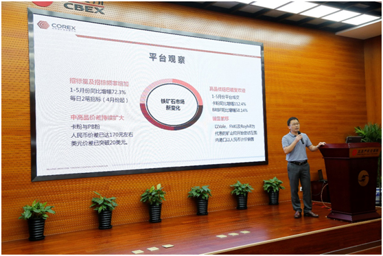 北铁中心总裁游松对参加本次活动的嘉宾和企业代表表示欢迎,介绍了本次会员活动的初衷,从平台角度出发与大家交流了市场新变化、平台交易情况和年度重点工作开展情况。最后,游松总裁表示,希望铁矿石经营企业能够更加积极的参与平台交易,共同推动建立公平、公正、科学、合理的铁矿石定价机制,同时利用好衍生品市场提供的风险管理工具,管理好现货市场经营风险。